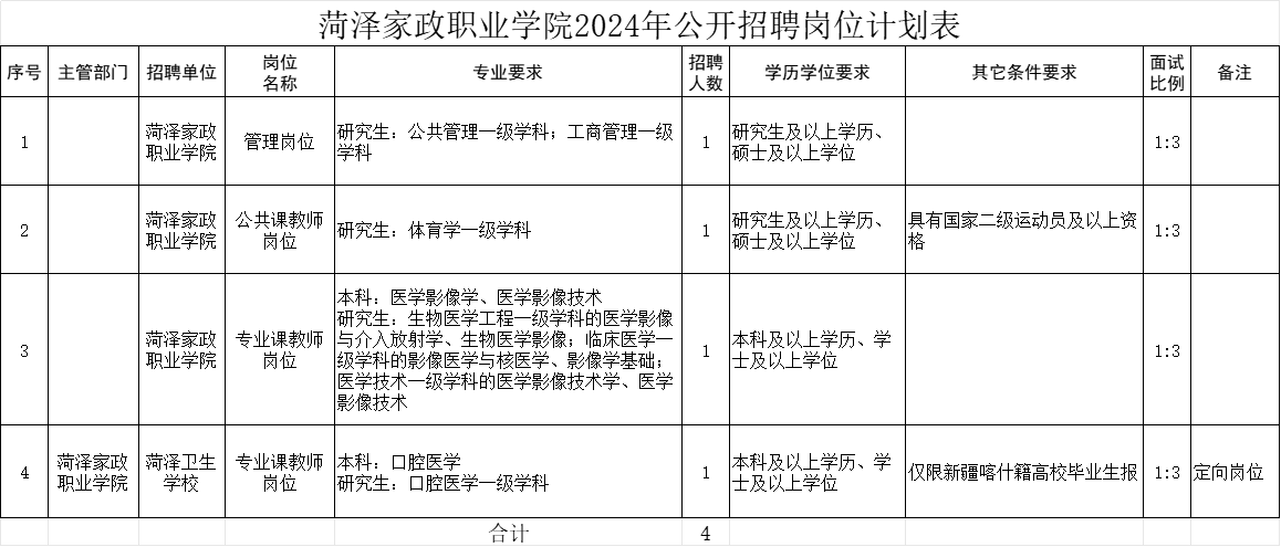 附件:菏泽家政职业学院2024年公开招聘岗位计划表