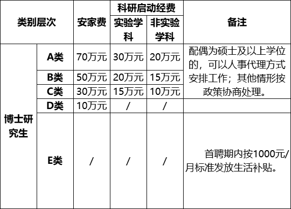 引进人才待遇标准一览表(单位:万元,人民币、税前金额)