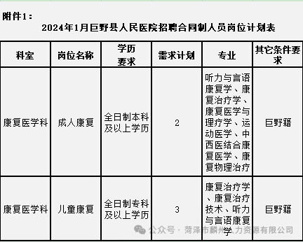 1、招聘岗位及数量:康复治疗5名(其中成人康复岗位2名、儿童康复岗位3名)