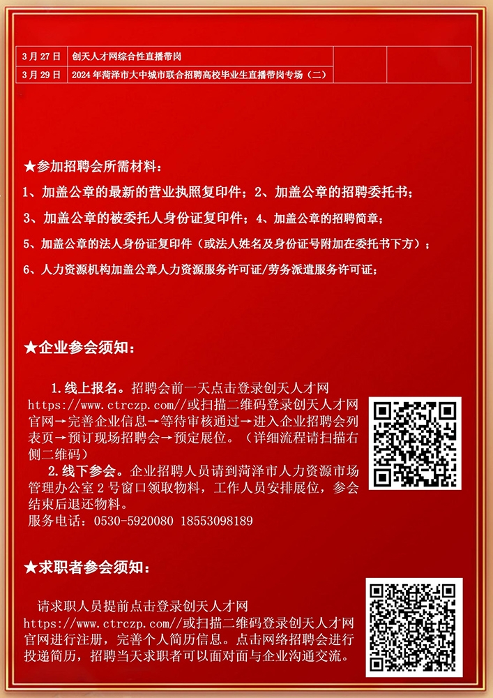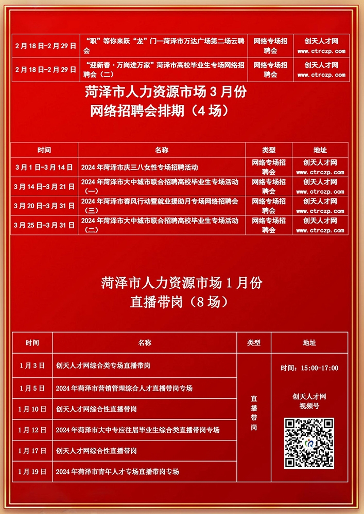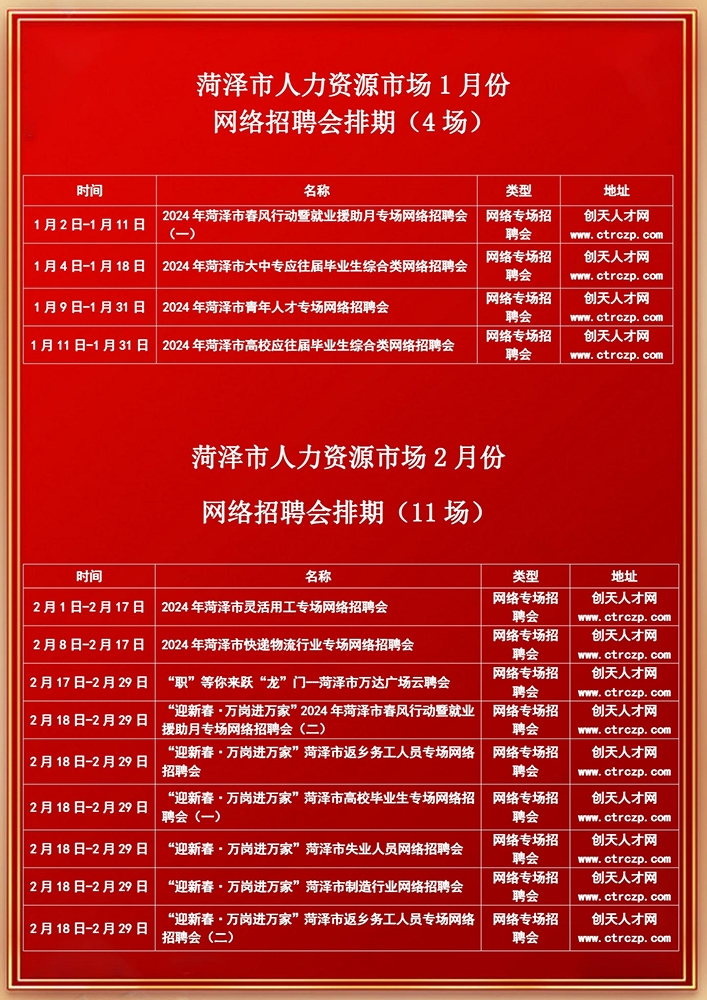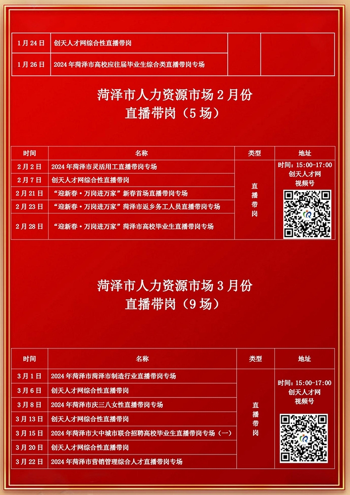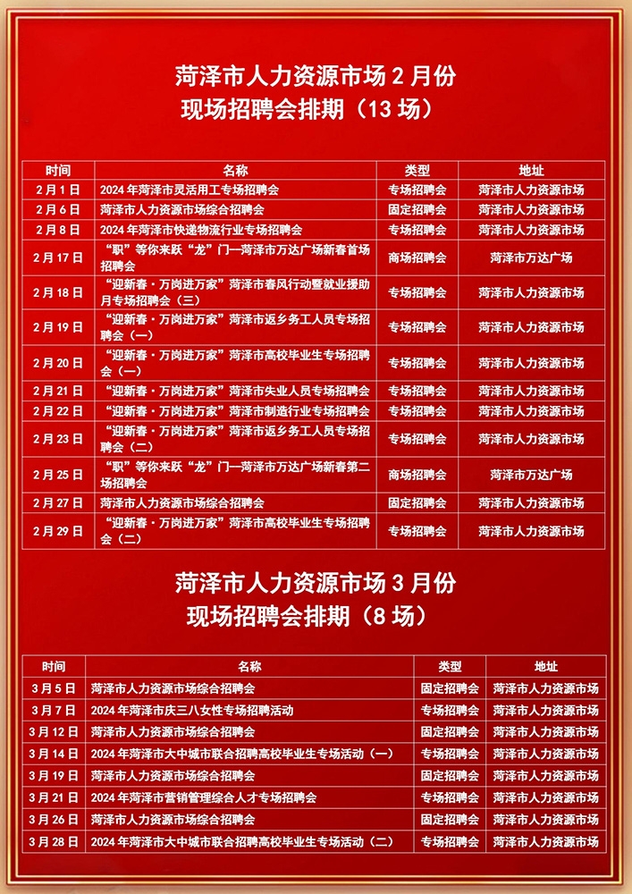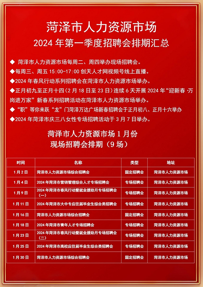 菏泽市人力资源市场2024年第一季度招聘会排期汇总