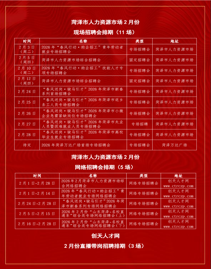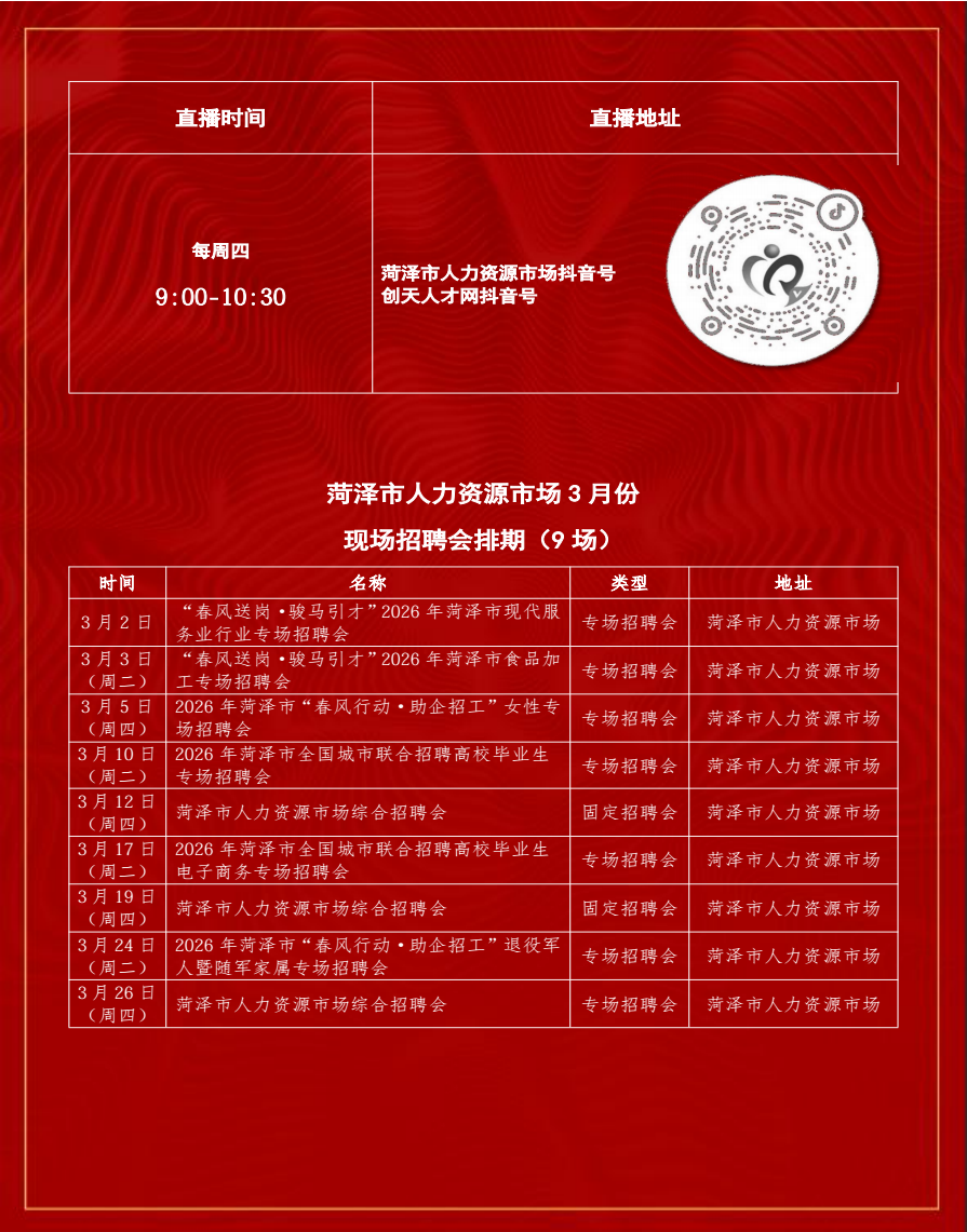 菏泽市人力资源市场2026年第一季度招聘会排期汇总